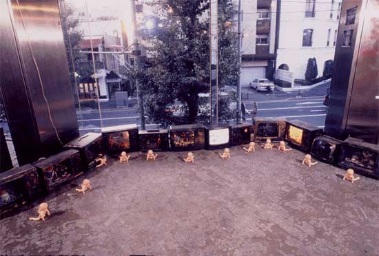 くりぬかれたテレビのなかでは人形たちが様々な悪夢をくりひろげる。