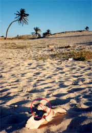 | 北アフリカにあるチュニジアにわたり、サハラ砂漠へむかう。偶像索拝を禁じられたイスラム国ではポスターや銅像も少なく、苦戦を強いられた。そこでオレはキャンディーやチョコレートで子供をだまし、いい人シールを貼らせまくる。 パリのルーブル美術館では(モナリザを狙っていた)警備が厳しく、一枚も貼れずに涙を呑んだが、チュニジアは警備が甘く、国宝級のギリシャ、ローマ彫刻などに、警備員とおいかけっこしながら貼りまくった。 |
