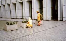 種を埋めたところに野ざらし画廊の旗を立てる