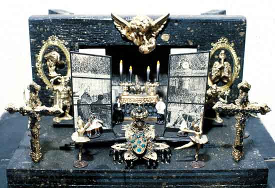 ゴキブリ王国の戴冠式(十字架にも本物のゴキブリがたくさん磔になっている)