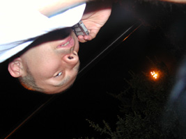大谷川沿いの芝生にハン師匠とビールやたこ焼きを持ち込み、うっとりとスターマインを見上げる。