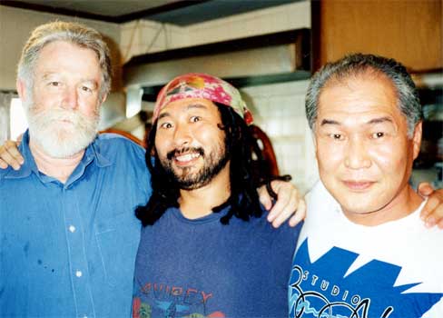 | 夢追い人、3人。左からジェームス・タレル氏、オレ、宮内勝典氏。顔にそれぞれの性格が現れていておかしい。 夢を見るのは誰でもできる。しかし見つづけるには、とてつもないパワーがいるのだ。 ともにニューヨーク時代をすごしたアニキ・宮内勝典氏はオレがいちばんスゲエと思う小説家だし、その親友ジェームス・タレル氏はオレがもっとも敬愛するアーティストだ。 宮内さんに関してはオレがここで説明するより、 真っ先に人気ホームページ「海亀通 信」を開くべし。 http://pws.prserv.net/umigame/ このときタレルは、世田谷美術館でおこなわれる個展で来日していた。サンタクロースのようなおっちゃんは人類にすばらしいプレゼントを残そうとしている。ミケランジェロが描いたシスティーナの礼拝堂もおよばない巨大作品だ。むしろエジプトのピラミッドやナスカの地上絵などの遺跡規模である。 タレルは自分で飛行機を操縦しながら(合計500時間にもおよぶフライト)アリゾナの砂漠にあるローデン・クレーターを発見した。この火山でできたクレーターの地下にトンネルを堀り、太陽や月や星座の運行を取り入れた瞑想スペースを作ろうというというのである。 ひとりのアーティストの夢想に、世界中から膨大な助成金が寄せられ、天文学者、光学研究者、建築家などが専門知識を集結し、二十年にもおよぶ巨大プロジェクトが2001年に完成するという。 とにかく百聞は一見に如かず。予約が相当つまっているらしいが、早く自分自身の肉体でこの作品を体験してみたい。 タレルの作品集はこちらへ。http://www.jamesturrell.com/ ローデンクレーター・プロジェクトはこちらへ。http://www.rodencrater.org/ |