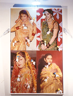 ポスター、ドーナッツ型蛍光灯、羽、毛糸の帽子とリボンをつけたオナニー済みティッシュ